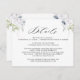 Cartão De Informações Detalhes do Casamento Floral Branco e Azul Elegant