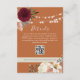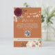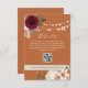 Cartão de noiva elegante, rústico, burgundy floral e laranja com código QR e website.