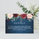 Cartão De Informações Detalhes do Casamento Floral de Blush Marinho Azul
