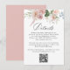 Facilite o acesso dos convidados aos detalhes do seu casamento com este elegante cartão de detalhes do código QR. Um belo arranjo floral de aquarela enfeita o topo, enquanto "Detalhes" é exibido em um roteiro elegante de caligrafia para um toque refinado. Personalize com informações importantes sobre o casamento, como detalhes do local, acomodações e agendamento, e inclua um código QR que vincule ao site do seu casamento para obter acesso fácil. Apresentando tons suaves de rosa empoeirado, rosa, azul, roxo, branco e verde, este design é perfeito para primavera e casamentos de verão. Uma na moda e uma maneira conveniente de manter seus convidados informados enquanto complementa sua suíte de casamento.