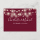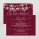 Um elegante cartão de informações de detalhes do casamento em burgundy com luzes de corda. Personalize com seus detalhes especiais em tipografia elegante e seus nomes e data do casamento no verso. Desenhado por Thisisnotme