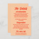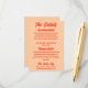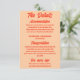 Detalhes simples e na moda retro colorido das informações do convidado de casamento. Com fundo de pêssego funkyhot e layout de texto em laranja em negrito. Todas as informações são personalizáveis como site, transporte, alojamento. Pegue junto com outros produtos desta mão clássica feita na suíte de casamento retrô.