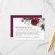 Cartões de cerimônias de casamento impressos para instruções, acomodações de viagem ou outras informações de convidados de casamento. Use as ferramentas de design para personalizar o layout, as cores de fundo e o texto com os detalhes do seu casamento. Este elegante design apresenta um buquê floral de cor d'água em cores vermelhas, verdes e burgundy, perfeito para um casamento no inverno ou festa de Natal!