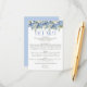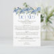 Desenho de casamento floral elegante com arranjos florais pintados à aguarela de flores de hortênsia azul, folhagens e rosas brancas.