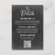 Layout estilizado do quadro negro com código QR na frente. Madeira de celeiro desgastada elegantemente clara no verso. Este cartão versátil pode complementar uma variedade de desenhos e estilos de casamento, mas é especialmente agradável para uma celebração de estilo de fazenda rústica do campo.