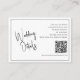 Este elegante cartão de detalhes de casamento do Código QR preto e branco apresenta caligrafia moderna e sofisticada de script com letra manuscrita, e a opção moderna de responder através do seu website, ou digitalizar o código QR com sua câmera de celular para enviá-los diretamente para o seu site de casamento para detalhes de casamento e RSVP. Perfeito para o simples casamento formal. Fácil de personalizar com seu próprio texto, site de casamento e código QR.