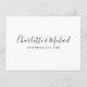 Um cartão de informações de detalhes do casamento preto e branco personalizado com seus detalhes especiais em tipografia elegante e seus nomes e data do casamento no verso. Projetado por Thisisnotme