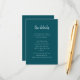 Cartão De Informações Detalhes do Casamento Profundo do Teal, Script Min