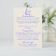 Simples e na moda retro azul, desenhando detalhes escritos de informações de convidados. Com fundo azul arrojado e formato de texto escrito à mão cremoso e garrafa e óculos de champanhe desenhados à mão. Todas as informações são personalizáveis como site, transporte, alojamento. Pegue junto com outros produtos desta mão clássica feita na suíte de casamento retrô.