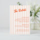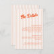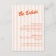 Apresentando nossa delicada carta de detalhes de casamento e tangerina, projetada para adicionar um toque de encanto retrô ao seu dia especial. O fundo listrado de pêssego suave é perfeitamente complementado pela vibrante caligrafia clássica tangerina que adiciona um pop de cor e sofisticação. O texto é totalmente personalizável.