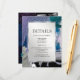 Detalhes do Casamento | Deixe seus convidados de fora da cidade sabendo sobre reservas de quartos e detalhes, fácil de personalizar com os detalhes do seu casamento. Pinceladas texturizadas metálicas falsas em negrito em um padrão abstrato em tons de branco pérola, ameixa, azul turquesa, violeta, lilás com inserção de prata acentuada com moldura dupla de prata com respingos de prata - este é um design ousado e certamente irá chamar a atenção. Combina bem com o tema de casamento lavanda e aqua, azul turquesa, lilás, orquídea ou ameixa. Fica ótimo em todos os tipos de papel, mas realmente brilha na escolha de papel semi brilhante. Nosso modelo é fácil de personalizar, mas se precisar de ajuda, sinta-se à vontade para nos contatar. Design original de pinceladas criado por © WhimsicalArt
