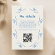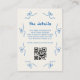 Compartilhe informações de chave em estilo com este cartão de detalhes do casamento francês de arco azul, com ilustrações desenhadas à mão, fontes de script suaves e um código QR personalizado ligando-se ao seu site de casamento. Perfeito para incluir agendamento, acomodações ou detalhes do registro, este gabinete adiciona charme ao seu pacote. Um belo toque para celebrações românticas inspiradas em parisiense.