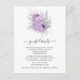 Lavanda roxo e falso convite de casamento floral com brilho prateado personalizável para suas especificidades de evento.