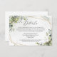 O cartão de detalhes do casamento da Trendy apresenta folhagem verde empoeirada de eucalipto tecida em falso quadro de ouro. Letra de script elegante. Contacte-me para obter itens correspondentes ou para personalização, Rosas emborrachados ©