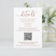 Este design apresenta simples detalhes elegantes no website, com informações sobre a caligrafia terracotta info, um endereço web moderno watercolor, rsvp online .com Brown, um código QR minimalista do rsvp verde, elegante simplista e moderno, um endereço web de resposta simples, uma resposta de convidado na internet, um rsvp online no site, um site moderno elegante de aquarela
