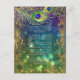 Cartão De Informações Detalhes Dourados do Casamento entre Penas Peacock