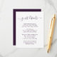 Forneça aos seus convidados detalhes importantes com este cartão de inclusão de casamento roxo elegante com uma fonte de letra moderna. Itens correspondentes disponíveis.