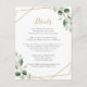 Projetado para combinar com nossa coleção de casamento Moody Greenery, este cartão de detalhes personalizável apresenta uma moldura geométrica dourada adornada com ramos de eucalipto em aquarela com texto em dourado e cinza. Para fazer alterações avançadas, selecione a opção "Clique para personalizar ainda mais" em Personalizar este modelo.