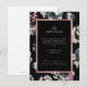 Moldura ousada de falso dourado rodeada por floral abstrato clássico moderno em burgundy escuro e sombrio, rosa, azul, cinza e preto, sofisticado e elegante. Ótimos cartões de detalhes de casamento para casamento clássico moderno no outono ou inverno.
