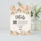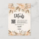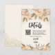 Lindo pêssego rústico, terracota pálido e flores em aquarela cinza e folhas marrons elegantes acentuam esses cartões de detalhes de casamento que apresentam um Código QR para o seu site de casamento e seus detalhes em letra chic. ITEMS CORRESPONDENTES em nossa coleção.