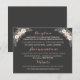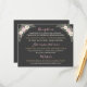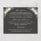 Apresente as informações do seu reception, hospedagem e site de casamento neste cartão de detalhes elegante com arranjos florais nos cantos de peônias rosa e folhagens verde-sage em um fundo rico em carvão. Títulos em caligrafia rosa e texto creme criam um layout organizado de forma linda contra o fundo escuro. Todo o texto é totalmente personalizável. Projetado para combinar com o conjunto floral carvão correspondente.