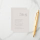Script mínimo 3.5x5, cartão de detalhes do envelope. Texto cinza escuro em um fundo bege claro. Parte de uma coleção de casamento.