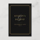 Linhas geométricas elegantes enquadram os detalhes da informação dos seus convidados neste cartão de inclusão clássico preto e dourado art déco. Projetado por Thisisnotme©