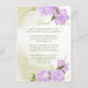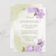 Cartão De Informações detalhes românticos das flores roxas verdes
