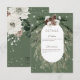 Este design apresenta um buquê rústico de pinheiro verde e pinhas sobre um fundo verde pinheiro com flores brancas. É acentuado com uma sobreposição de brilho branco para ilustrar a magia das belas festas de inverno. Perfeito para um casamento de Natal ou de inverno. Este cartão faz parte da Coleção de Casamento Rustic Green Pine Winter Sparkle criada pela Simply Farmhouse Press.