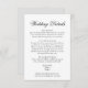 Esta placa de gabinete é a maneira perfeita de fornecer aos seus convidados informações importantes que podem não ajustado no convite formal. As informações sugeridas incluem detalhes sobre recepção, acomodações, transporte, registro de presentes e site. O design preto e branco é simples, mas elegante, com um título de script antigo. A parte traseira da placa é uma cor de cinza pálida.