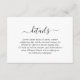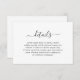 Simples cartão de cerimônia de casamento simples com um design limpo e minimalista com um toque elegante com "detalhes" em roteiro com supressões. Um moderno cartão de casamento preto e branco que se coordena lindamente com qualquer estilo de casamento. Use esses cartões de cercado para fornecer instruções e outros detalhes importantes de casamento que seus hóspedes talvez precisem conhecer, como acomodações de hotel, estacionamento, informações sobre ônibus, etc.