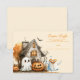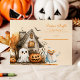 Celebre a chegada com este acolhedor e neutro convite para o chá de fraldas de Halloween! Apresentando uma charmosa casota assombrada, personagens fantasmas amigáveis, e folhagem de outono em bege quente e tons laranja, é perfeito para uma sutil e doce celebração do outono.