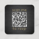 Simplifique as respostas de RSVP e forneça todos os detalhes importantes com as placas de gabinete quadrado de código QR modernas. Todo texto é simples de personalizar, incluindo texto que diz "digitalize-me para rsvp". Para fazer seu próprio código QR usando o gerador, basta digitar o URL do site no modelo. Ao digitalizar o cartão com seus telefones, os convidados são enviados diretamente para o site do casamento para responder ao convite. Um processo de rsvp on-line reduz a chance de que as cartas sejam perdidas no correio. Também é mais versátil, na medida em que você pode pedir informações mais detalhadas, como escolhas de refeições, alergias à comida e pedidos de música. Todas as informações de resposta podem ser personalizadas ou excluídas. A design de preto e dourado apresenta um fundo metálico piscado e elegante tipografia moderna. Observe que o ouro é impresso a cor, não a folha metálica. Este cartão é uma forma na moda de pedir aos convidados do casamento que respondam gentilmente à sua próxima comemoração especial.