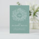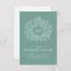 Cartão de resposta com código QR de casamento com monograma de folha desenhada à mão em verde suave. Este cartão simples, porém elegante, faz parte da coleção de casamento com monograma de folha desenhada à mão em verde cinza e branco. Ideal para usar como cartão de informações de casamento para informar seus convidados sobre seu site e opção de resposta online. Desenho simples de folha circulando o desenho de suas iniciais monogramas. Em tons bonitos de verde suave e branco. Outras opções de cores estão disponíveis. Use https://www.qr-code-generator.com/ ou outro site gerador de código QR e selecione a cor #75a096 para combinar com este design de código QR. Desenho original da folha por Sarah Trett para www.mylittleedenweddings.com