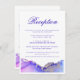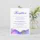 Um cartão de cervejaria formal adornada com uma bela tinta a álcool em cores violeta, roxo, azul e rosa. Um cartão de detalhes elegante com 'Recepção' na frente e 'Direções' no verso. A tipografia é acentuada por tons de joias ricos em espirais de cor líquida de ametista e safira. Bonita e intrincada como agate e geodes. O cartão tem um modelo fácil de editar; ao qual os detalhes do casamento podem ser adicionados. Placa receptáculo Abstrato Recepção de casamento Roxo Roxo Arte abstrato original da artista internacional Pauline Benjes.