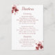 Oriente seus convidados ao local do casamento com este lindo cartão de inclusão. Usando um fundo branco, o canto superior esquerdo e inferior direito apresentam um desenho de flor elegante em aquarela na cor borgonha. O texto é o seguinte: "Direções" está centralizado no topo usando fonte cursiva borgonha. Abaixo está um modelo para inserir os detalhes da cerimônia e recepção, tudo em borgonha. Personalize este cartão de inclusão hoje mesmo!