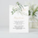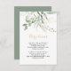 Este cartão de cerimônia de caligrafia verde-dourada é perfeito para um casamento rústico. Este design artístico apresenta a aquarela desenhada à mão, ouro e folhagem verde, inspirando beleza natural.