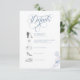 Elegant dusty blue wedding details card featuring romantic calligraphy script and a clean, minimalist timeline layout. Includes a scannable QR code for easy access to your wedding website or RSVP, making it simple for guests to view event details and respond online. Designed with soft botanical accents and timeless typography, this card is perfect for modern, classic, or formal weddings looking for a cohesive and sophisticated stationery suite.