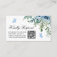 Cartão De Informações Dusty Blue Flowers Wedding QR Code RSVP