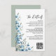 This beautiful enclosure card is designed to give your guests extra information about your wedding and point them to your website for rsvp and details. The elegant boho chic design features a spray of delicate wildflowers in spring shades of dusty blue and periwinkle. The modern script title reads "The Details" and there is a customizable qr code at the bottom. The back is a beautiful sage green color with a small cluster of the same flowers.
