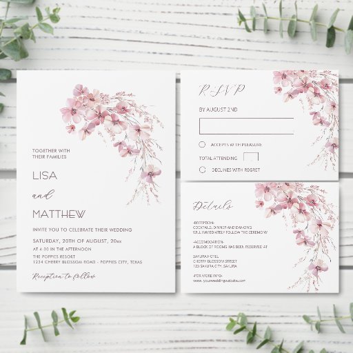 Cartão De Informações Dusty Pink Boho Wildflowers Details Enclosure Card