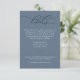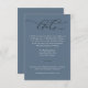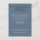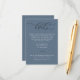 Este cartão de cerimônia de Detalhes foi projetado para combinar perfeitamente com a suíte de Convite para Casamento de Serenidade Elegante — uma corporização de eterno de beleza refinada que captura a essência do amor e da unidade. Este conjunto de convites é uma obra-prima da design, com uma excelente combinação de elementos que harmoniza perfeitamente a estética moderna com a sofisticação clássica. Este cartão de cerimônia contém um gráfico de "detalhes" embelezado com um roteiro embelezado e um local para incluir detalhes adicionais de seu casamento, como hospedagem ou instruções, juntamente com um local para incluir seu endereço no site do casamento. O fundo azul empoeirado neutro coordena-se com a suíte de convites para Serenidade Elegante e Casamento de Script, mas pode ser facilmente alterado para corresponder às suas cores pessoais de casamento.