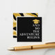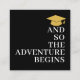 E assim a Aventura Aguarda o Tema da Festa de formatura — Um design negro e dourado moderno para celebrar o formando. Placa de festa de formatura — Um tema de caligrafia de ressalto de tendência. A parte traseira da placa tem um lugar para adicionar qualquer tipo sobre presentes de graduação e um código qr para enviar o pessoas a um aplicativo com este design elegante e de tendência. Isto pode ser utilizado para qualquer formando - segundo grau, universidade, escola de formando, escola de medicina ou mesmo escola de comércio.