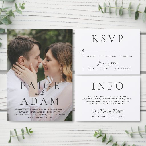 Modern editorial style wedding enclosure card with bold typography and your favorite photo. A clean and simple design for a wedding during any time of year.