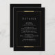 Elegante moldura moderna em dourado falso com conteúdo em fonte serifada e script estiloso em fundo preto, simples e sofisticado. Ótimo cartão de detalhes para casamento clássico moderno, casamento luxuoso vintage e casamento formal simples.