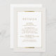 Moldura moderna elegante em dourado falso com conteúdo de letra estilosa e fonte serifa em fundo marfim, simples e sofisticada. Cartão de detalhes ótimo para casamento moderno clássico, casamento luxuoso vintage e casamento formal simples.