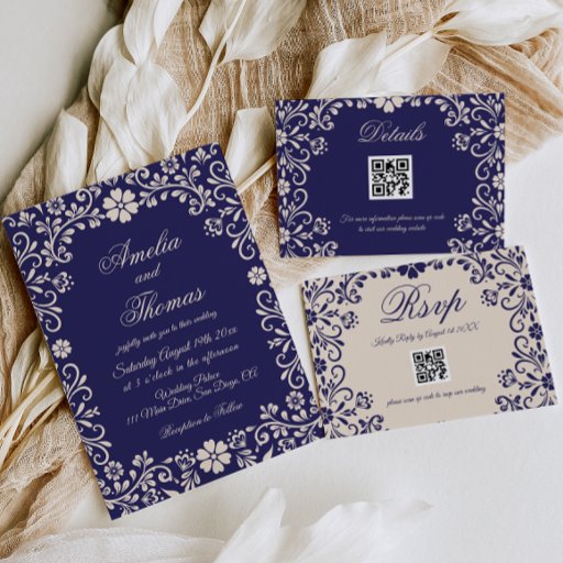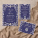 Cartão De Informações Elegant Blue Wedding Qr code Details