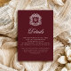 Cartão De Informações Elegant Burgundy Monogram Crest Wedding Details