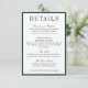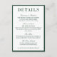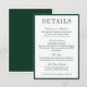Cartão De Informações Elegant Dark Green Minimalist Wedding Details