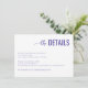This wedding enclosure card features a clean, minimalist design with ample white space and a centered layout. The title "the DETAILS" is elegantly presented in a mix of cursive and bold sans-serif fonts in deep purple, creating an eye-catching contrast against the white background. The body text uses a simple serif font in black for clarity, providing essential information about room reservations and shuttle details. The overall style is modern and professional, conveying elegance and simplicity, making it perfect for formal events like weddings.